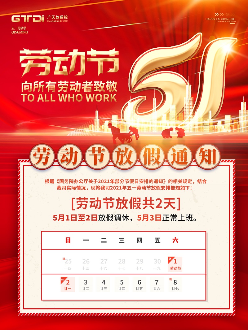 米兰数控2021年五一劳动节放假通知