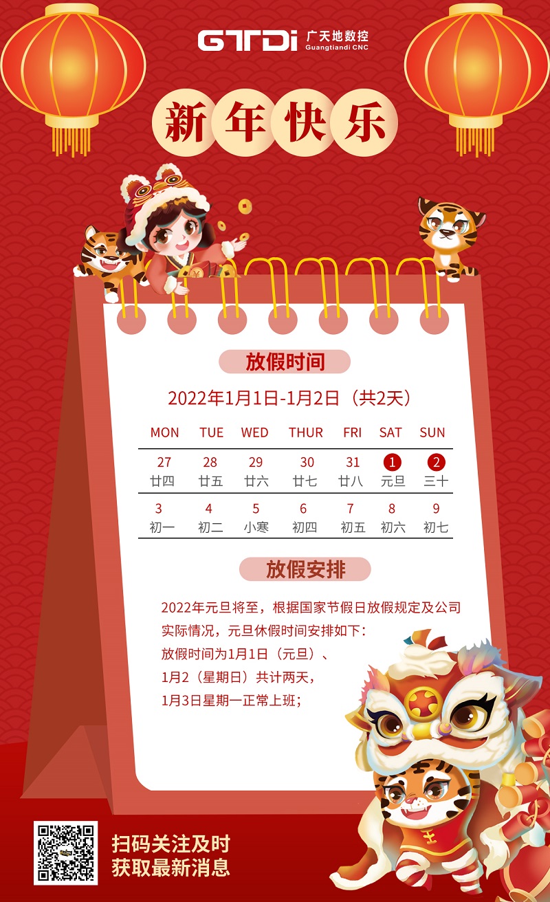 广天地数控2022年元旦节放假时间安排